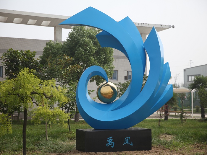 “禹风”雕塑主体由抽象的风雨、明珠和基座组成。雕塑运用抽象的雕塑语言将无形的风具象化,结合雨的形态,整体视觉仿佛水与风交融汇聚成珠,有风、有雨、有珠,“禹风厚德,孕沙成珠”是蚌埠城市精神,也是罪犯改过自新很好的座右铭。