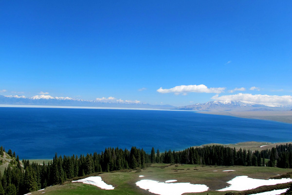 赛里木抱于三山间,翠玉嵌入。古丝绸道傍,亦至伊犁公路所在。东西六十里,南北五十里,湖水甚深,盐涩极淡,几不可觉。其地颇寒,五月化冰。古,东岸设鄂勒著依图博木军台,序列三台。试湖畔点将,金戈铁马映于湖心,何其壮哉。是以塞内才子不知西域秀丽。文士鲜有词汇。是以塞外苦寒之境,江南文弱书生岂可亲睹。东来者,停驻湖畔,凉风朔朔,波澜不惊。复西行,青松挺拔,芳草冉冉,景境讷言不达,是谓“清风动衣襟,大池翻波澜。天水共一色,翠湖胜玉盘。山冠夏雪覆,碧野群芳开。微风拂翠薇,天马尽慵懒。云气侵人近,平波笼寒烟。青霭萦我梦,孰辨人与仙?”