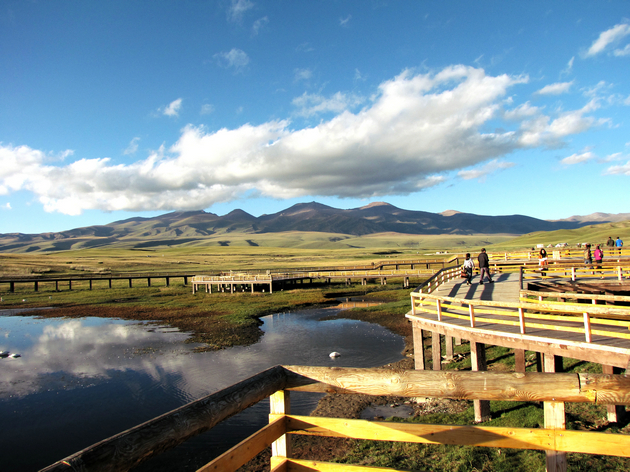 每当春天来到,冰雪消融,万物复苏,大批天鹅从印度和非洲南部成群结队的飞越丛山峻岭,来到天鹅湖栖息繁衍,在和煦的阳光下,湖水、天光、云影、天鹅,构成一幅“片水无痕浸碧天,山容水态自成图”的画卷。盛夏时节,草原上鲜花盛开,争奇斗艳,成群的牛、羊、马、牦牛、骆驼在如茵的绿草地上游荡,座座蒙古包坐落其间,天鹅在大小湖泊里游弋,一幅幅美丽的画卷,无不让人心旷神怡。初秋,草原一片金黄,碧蓝的湖泊星星点灯洒落其中,雪山、湖泊和变化无穷的云层,每一个元素都搭配得天衣无缝。当太阳落到草原之下时,漫天的红霞染红整个草原,燃烧整条河流,让人感受到大自然的无穷魅力。
