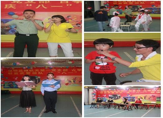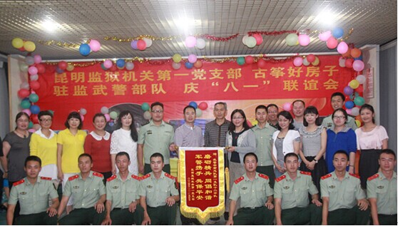 为进一步加强与驻监武警部队的沟通,感谢部队对监狱岗位练兵的大力支持,增进共建友谊,促进和谐军警关系建设,2014年7月28日晚,昆明监狱机关第一党支部全体党员及家属与驻监武警部队官兵们欢聚一堂,共同举办庆“八一”联谊会。