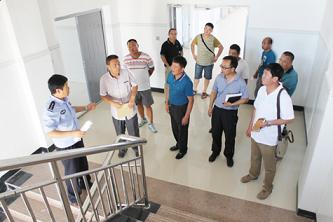 验收组成员对戒毒人员宿舍楼进行检查验收