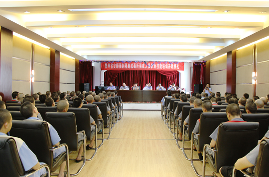 贵州省利美康职业技工学校校长杨秋菊就培训的有关情况讲话。她说,此次培训是根据贵州省社会资源和劳动保障厅与省司法厅二○一一年联合下发的《关于对服刑在戒人员进行职业技能培训的实施意见》文件要求,学校通过省司法厅公开招标中标后而实施的,凡符合条件的在戒人员都可以参加培训。希望学员们认真学习,掌握一门谋生手段,为回归社会做一个自食其力的人打下基础。