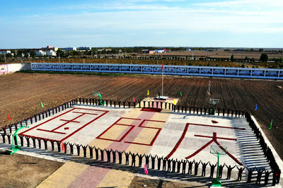 图牧吉强制隔离戒毒所一大队全体民警及学员,用自己一年来的“习艺果实”向国庆65周年献礼,揭开了我所民警、学员共庆伟大祖国的65周年的序曲。鲜红的辣椒、金黄的玉米,拼画出迎风飘扬的五星红旗,拼写出“国庆65”周年的生动字样,它代表着全体民警对祖国的忠诚,全体戒毒学员自食其力的成果。最后,民警与学员们手拉手围站在拼图周围,为祖国祈祷祝福。
