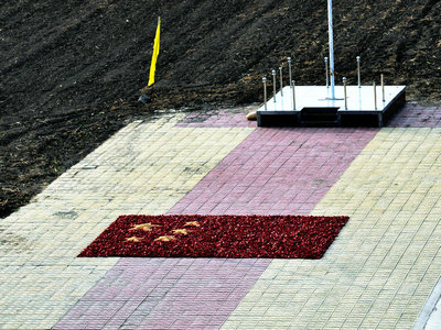 图牧吉强制隔离戒毒所一大队全体民警及学员,用自己一年来的“习艺果实”向国庆65周年献礼,揭开了我所民警、学员共庆伟大祖国的65周年的序曲。鲜红的辣椒、金黄的玉米,拼画出迎风飘扬的五星红旗,拼写出“国庆65”周年的生动字样,它代表着全体民警对祖国的忠诚,全体戒毒学员自食其力的成果。最后,民警与学员们手拉手围站在拼图周围,为祖国祈祷祝福。
