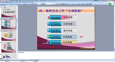一是场所安全的重要内容就是“六防”,即防非正常死亡、防所内吸毒、防逃跑、防所内发案、防生产安全事故、防重大疫情事故;二是场所安全工作的“四大特性”,即要求我们树立安全首位意识、了解工作的复杂性,树立危险意识、明白工作的长期性,树立责任意识、知道安全的可防性,树立科学意识;三是场所安全工作的“五项机制”。即排查机制、发现问题,研判机制、分析问题,防控机制、解决问题,处突机制、补救措施,追究机制、问责措施;四是场所安全工作的“五个重点”。即重点人员、重点部位、重点物品、重点时段、重点环节;五是场所安全工作的“四大措施”。即人防是根本、物防是保障、技防是辅助、联防是补充;
