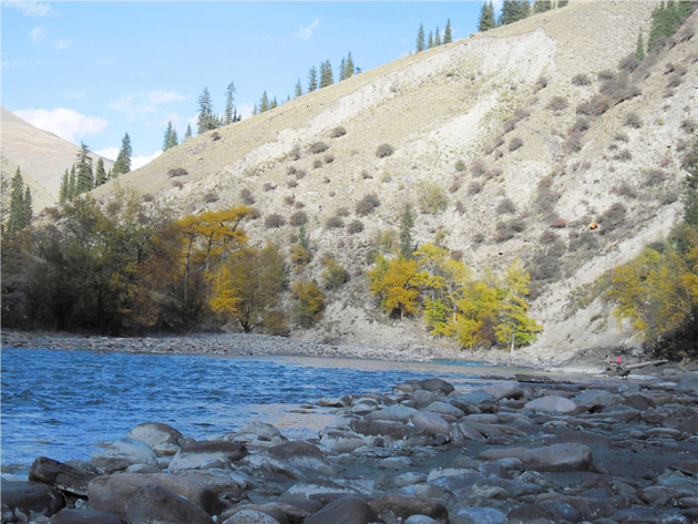 没有路可以通达,甚至马匹在这里都举步维艰。河流两旁分布着广阔的阔叶、针叶混交林,还有高山草场。树木枝繁叶茂,层层落叶在林间堆积,人走在上面会发出簌簌的响声;野蘑菇长在腐朽的树枝上或潮湿的草地中。这里也是动物的乐园:树上有跳跃的松鼠,灌木中有窜动的野兔,都在富饶的山谷里嬉戏打闹。