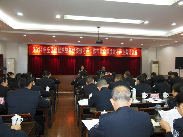 为做好全区监狱系统2014年度年终绩效考评工作,12月5日,广西监狱系统年终绩效考评工作布置会议在柳州转送站召开。自治区监狱管理局机关、集团公司各处室相关人员、各监狱单位纪委书记、监察室主任及绩效考评工作人员共129人参加了会议。