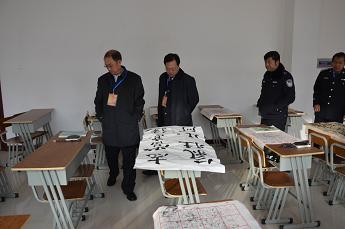 李一黎观赏戒毒人员书法作品