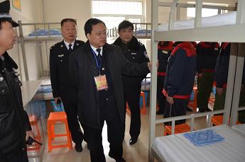 12月27日下午,司法部戒毒管理局李一黎副巡视员(中)率督察组对五原戒毒所进行专项警务督察检查