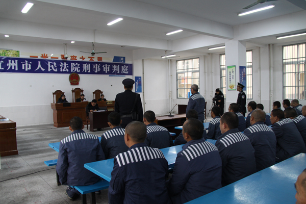 2月4日下午,在宜州监狱内一场法庭审判正在进行,宜州监狱监管民警和150名服刑人员旁听了这场狱内庭审。