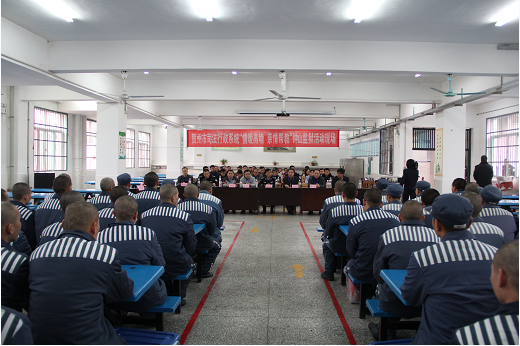 陈副监狱长致欢迎词。他指出,钟山监狱严格执行“惩罚与改造相结合,以改造人为宗旨”的监狱工作方针,贯彻落实党的十八届四中全会“依法治国”的要求,以平安监狱、法治监狱、文化监狱建设为主线,坚持依法治监,坚持严格文明执法,不断改善教育改造环境,积极探索教育改造创新和社会管理创新,确保了监狱的持续安全稳定,罪犯教育改造质量不断提高。他希望服刑人员加强学习,遵守监规,服从管教,积极改造,早日回到亲人身边团聚,早日投入到贺州大发展的建设中。