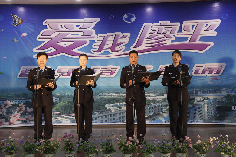 此次诗文朗诵比赛以“爱我廖平”为主题,内容为诗歌、散文、随笔等,此次比赛的参赛作品大多是该监狱各单位选手的原创之作。朗诵配以音乐,部分参赛作品还融入舞蹈和情景表演等。参赛选手个个精神饱满,士气高昂,把真情实感抒发,把美好畅想表达。他们赞美黎塘监狱精神,讴歌廖平人的光荣传统,表达自己对监狱事业的热爱与忠诚。选手们时而深情款款,时而高亢激昂,他们抑扬顿挫、声情并茂的朗诵带领观众们一起走进诗情画意,共同品味高雅,陶冶情操,赢得了观众的热烈掌声,为大家送上了丰富的朗诵盛宴。监狱办公室孙庆新还为大家献唱一曲《想起我的老妈妈》,给比赛增色添彩,让大家得到美的享受和熏陶。