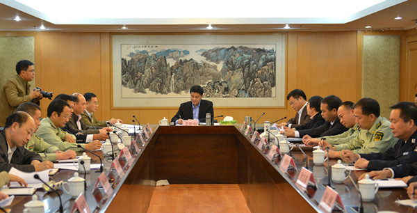下午15时,会议在朱永辉副市长的主持下准时召开。参加会议的单位包括市公安局、司法局、信访局、应急办、征兵办、武警贵港市支队、市公安消防支队、市边防检查站等9个部门。会议的第一项议程是由与会的各单位主要领导作汇报发言。贵港监狱黄德华监狱长在发言中汇报了监狱2014年工作的基本情况、取得的成绩、存在的不足和遇到的困难,并提出了2015年的工作思路。同时,黄监狱长还就我监警察职工到监管区上班遇到的交通不便的困难,向市领导作了反映,并希望市政府给予重视和解决。
