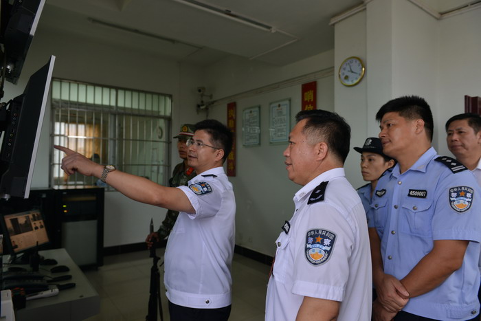 8月14日下午,广西区监狱管理局李健政委率工作组到贵港监狱检查指导工作。李健政委一行首先到监区进行实地查看,检查了解贵港监狱“四防一体化”建设、监管安全工作情况,随后回到监管指挥中心会议室进行座谈。