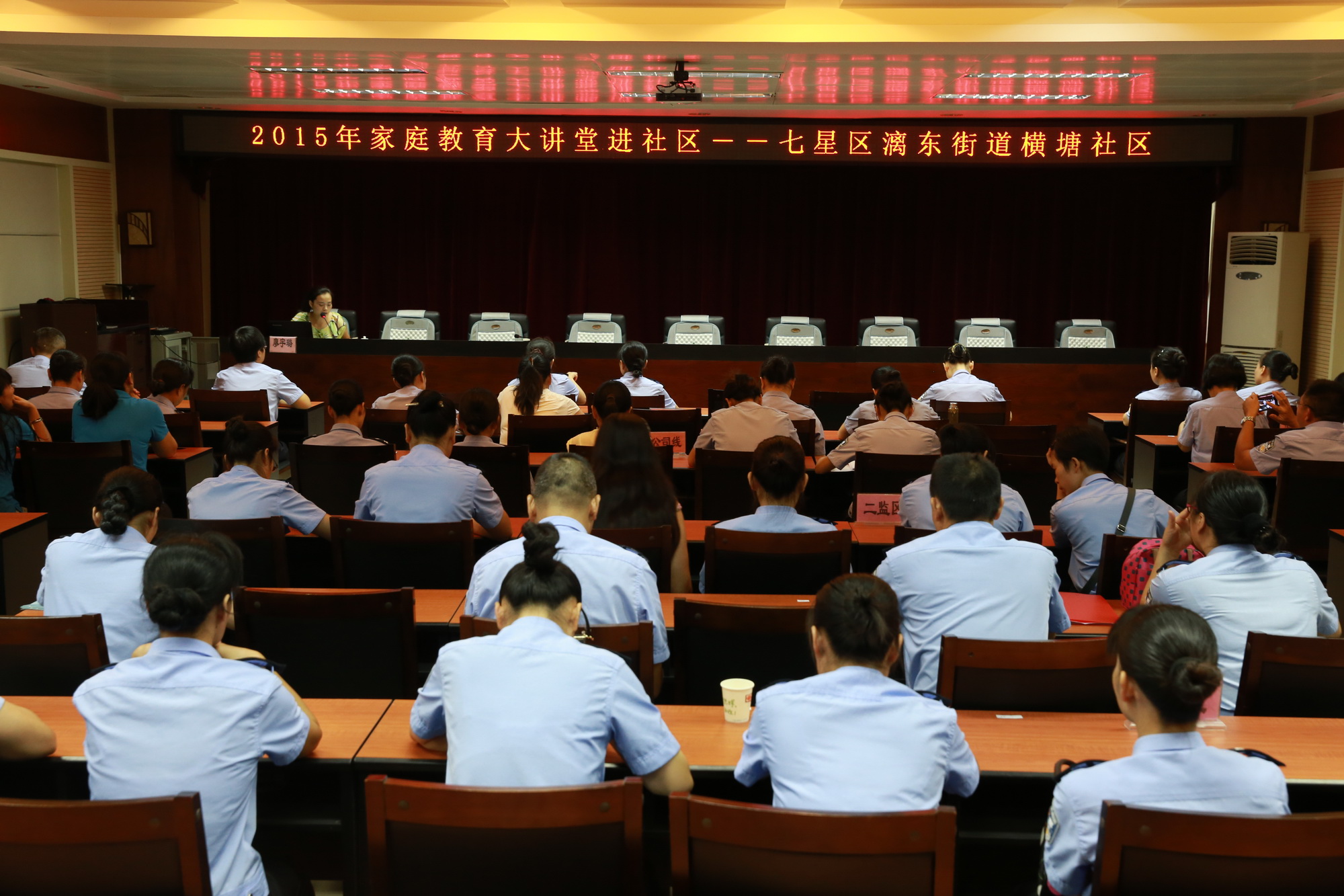 8月26日上午九时三十分,桂林市七星区妇联2015年家庭教育大讲堂在英山监狱五楼会议室开讲。妇联廖宇璐同志给到场的56名监狱警察职工献上了一堂生动而有意义的讲座。