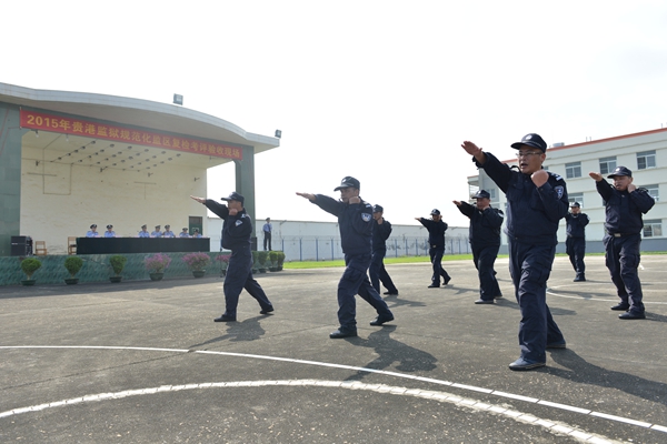 上午,莫海波副处长一行在我监覃朝勇副监狱长、蒙斯杰副监狱长及相关业务部门领导的陪同下,在监管区大操场对三监区警察、服刑人员分别进行考评。警察考评内容有:队列,警棍操,擒敌拳,应知应会;服刑人员考评内容有:队列,唱改造歌曲,集体、个人条文背诵。