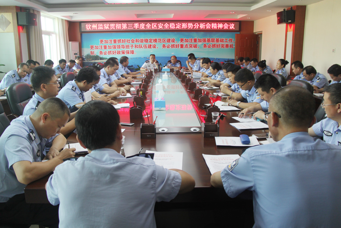 10月19日上午,钦州监狱召开贯彻第三季度全区监狱安全稳定形势分析会精神会议,要求全力抓好安全稳定工作,确保全年实现“五无目标”。