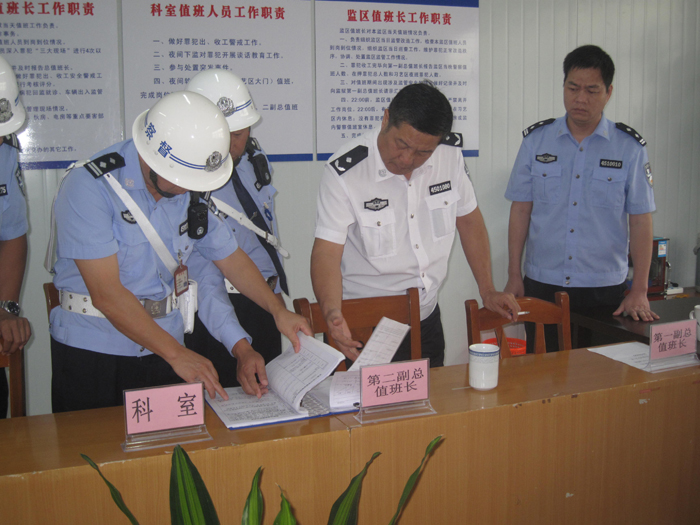 检查结束后,督察组肯定了监狱在严格按照“7S”要求规范管理,加强“三大现场”管理制度落实等方面所做的工作,对监狱严格贯彻落实《广西监狱系统警察值班和备勤工作制度》,做好监狱总值班工作给予了高度评价。同时,督察组也指出督察中发现的监管区个别警示标识不清晰等问题,并明确整改要求。监狱政治处刘炜主任对局督察组的认真、严谨的督察检查和工作指导表示感谢,强调各部门要严格按照督察组提出的工作建议要求,推进各项工作制度进一步落实。