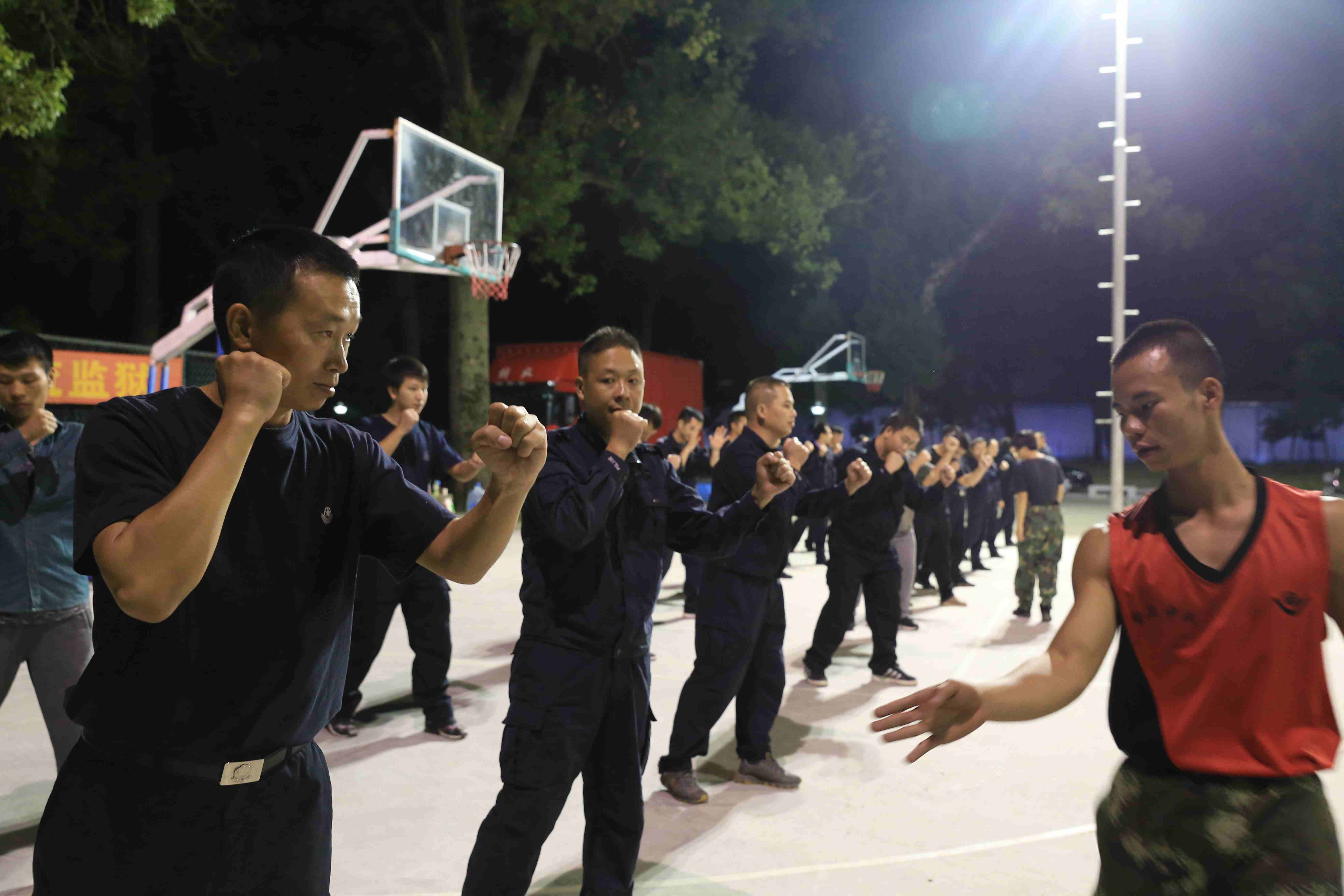 二是严训练,深抠细挖动作要领。为做好此次迎检工作,充分展现英山监狱警察风采,监狱与驻监武警沟通后,抽调武警教官协助监狱训练,严格按照军事化模式进行管理和训练,细抠动作、深研方法。在擒敌拳训练中,由于许多队员对第三套擒敌拳不甚熟悉,武警教官详细讲解动作要领,规范动作标准,严格纠正错误动作,训练中,参训队员情绪高涨、口号响亮、动作有力、行动统一,反复练习、认真做好每一个动作 一拳一掌落地有声,一招一式虎虎生风,从而确保了训练质量。