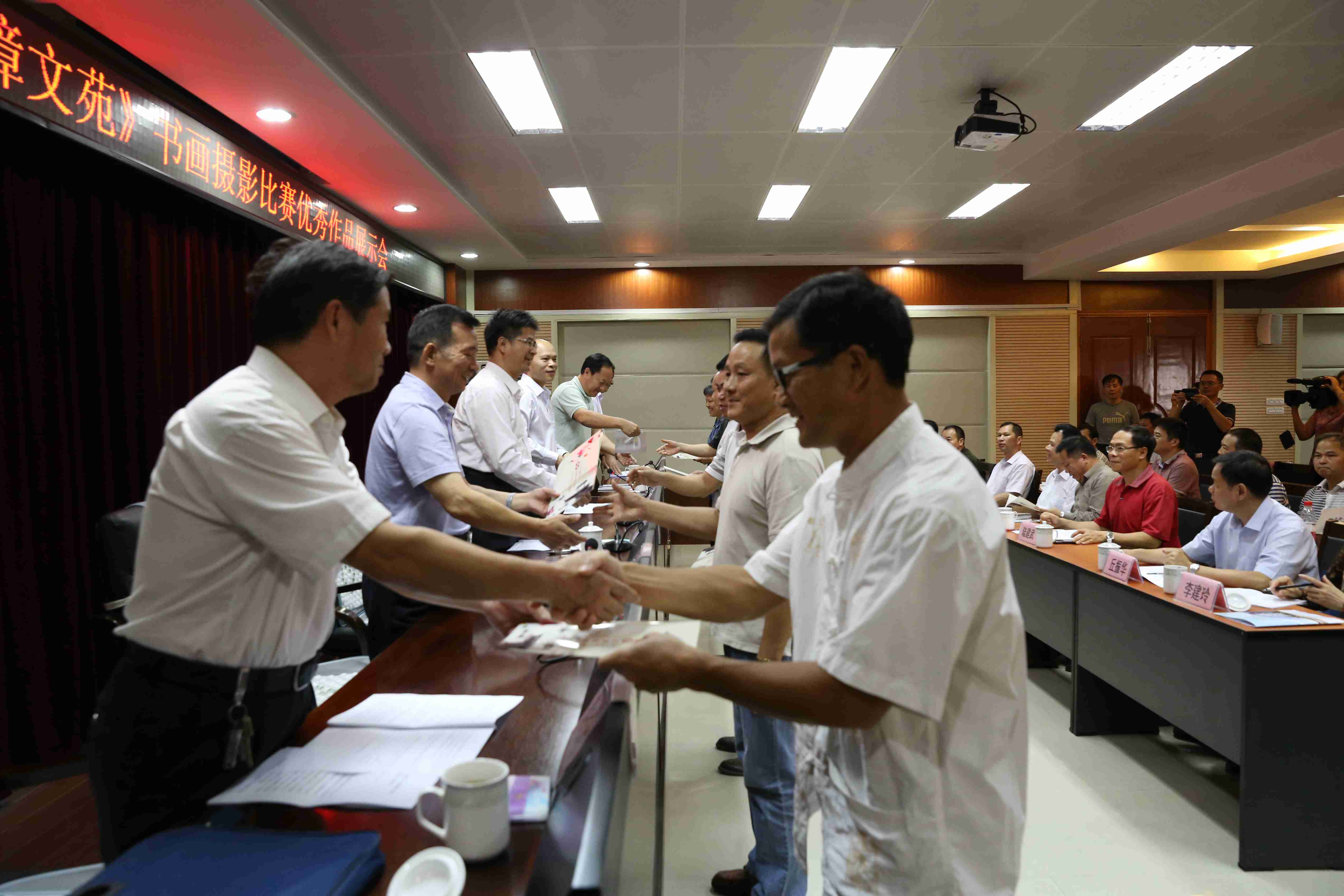 此次展示会主要对2015年局《香樟文苑》书画摄影优秀获奖作者进行表彰,并对获奖作品进行展示。会上,英山监狱党委书记、监狱长李玉�致欢迎词,区监狱局副局长范庆平通报了书画摄影作品比赛征集和评审工作情况,自治区监狱管理局副政委邵有才宣读评审结果。与会局领导为获奖代表颁发证书,随后自治区监狱管理局党委副书记、政委李健就进一步开展好书画摄影比赛活动做了指示。