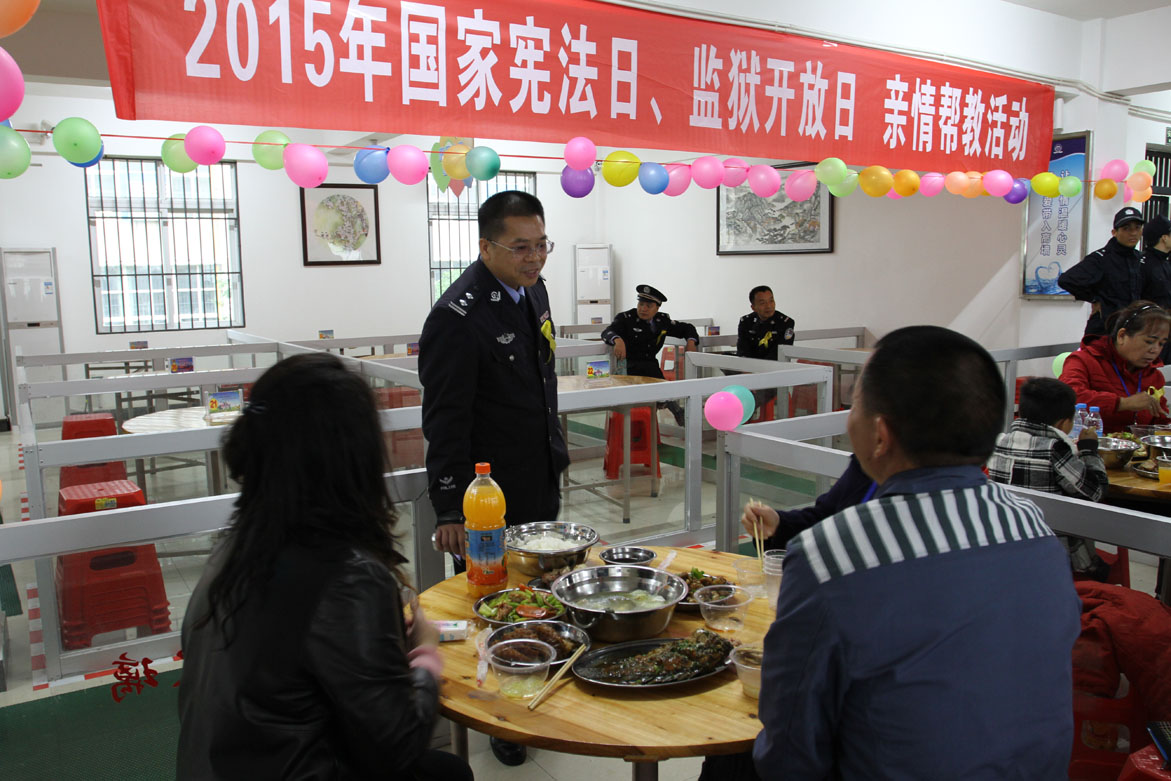 启动仪式后还相继开展了“宪法日”活动及监狱开放日活动。在“宪法日”活动环节,民盟盟员通过开展宪法知识专题讲座、现场法律咨询,为服刑人员普及法律知识,解答法律疑惑。此外,现场还举办了2015年度临释人员就业指导和安置帮教推介会,来自东莞、福建和钦州本地7家企业的代表与监狱170名临释人员面对面进行互动了解,为临释服刑人员回归社会后重新就业提供了有益辅导。在监狱开放日活动环节,现场更是亲情满溢。服刑人员代表与各自家属深情互动,彼此激动拥抱,表达思念,互诉近况。在亲情聚餐的短暂团聚时刻,家属们的真切嘱咐,更如一股暖流,温暖服刑人员的心灵,并激发他们积极改造的信心。