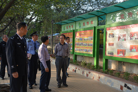 参观未成年犯管教所宣传栏。
