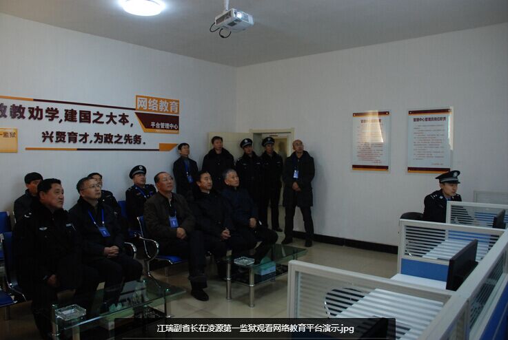 图片说明:�瑞副省长在凌源第一监狱观看网络教育平台演示