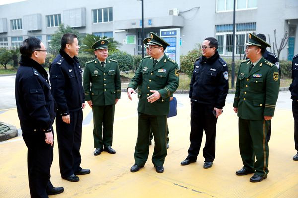 1月14日,浙江省武警总队副司令员杭华根一行到杭州市属监狱检查指导“湖北会议”精神贯彻落实情况。