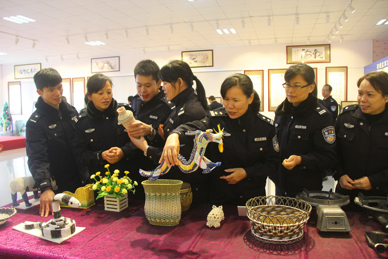 在教育改造成果展厅,钦州监狱一行仔细参观每一个角落,并与黎塘监狱领导交流监区文化建设经验。在现场,服刑人员的劳动产品、书法绘画、手工艺作品质量好、水平高,大家纷纷表示赞扬,并对黎塘监狱积极发挥“两个队伍”的聪明才智,使他们主动参与到监区文化建设的经验做法,表示值得借鉴学习。