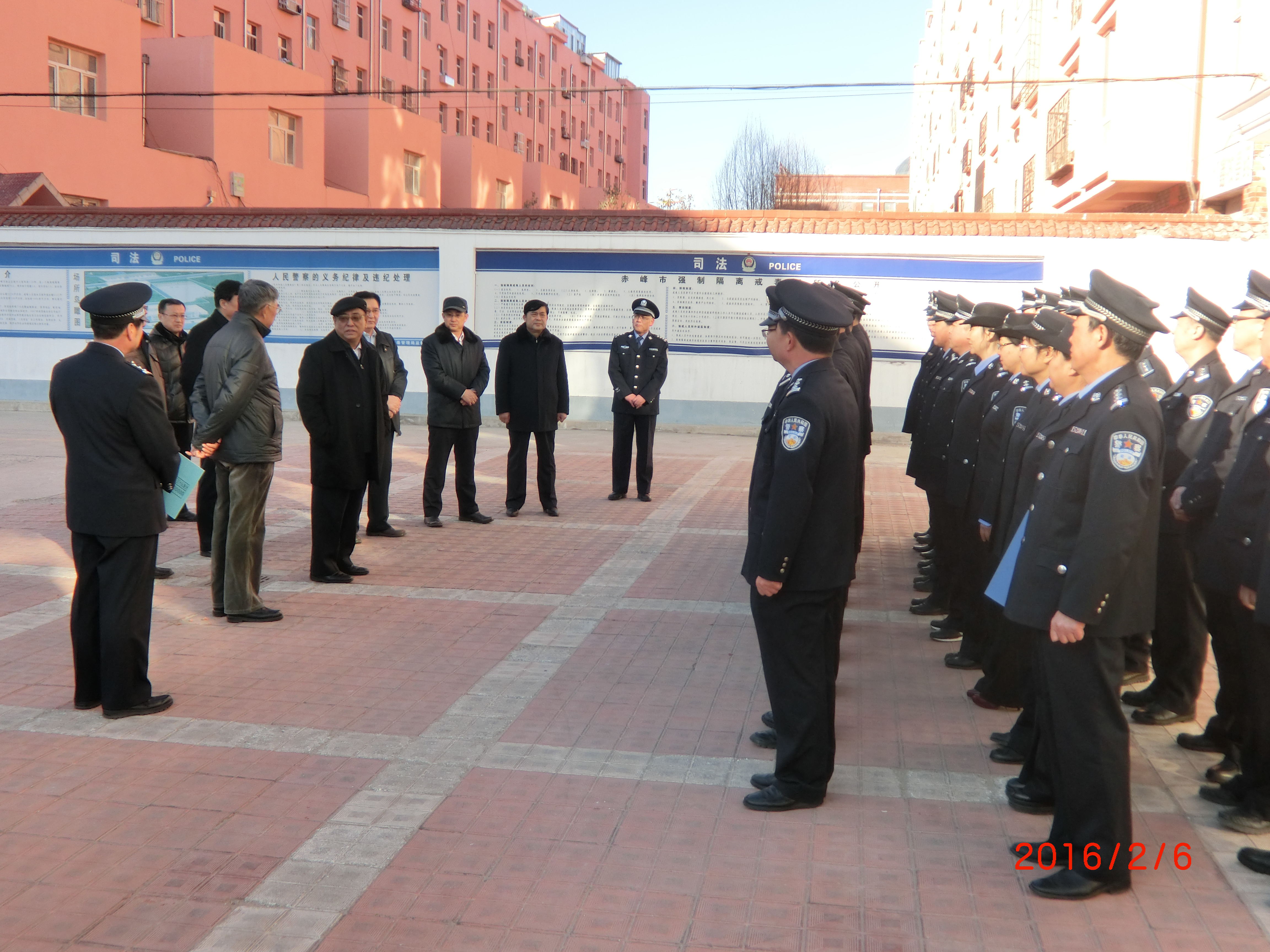 1月6日,自治区司法厅党委书记、厅长周黎明,副厅长张德成、徐宏光,自治区戒毒局长段和平等领导,在赤峰市老领导赵兴和市人大副主任贾永民,赤峰市司法局局长、戒毒所党委书记宋力夫等领导陪同下,到赤峰市戒毒所检查指导工作,并慰问干警。