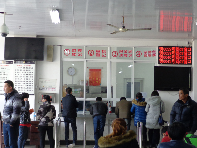 “每逢佳节倍思亲”。每年的春节前夕,都会出现罪犯亲属来监探视的高峰期。为此,宜州监狱未雨绸缪,提前采取有力措施,切实加强节前会见管理工作。一是调整会见日期,增加会见时间。把原来的每周两天会见日调整为节前的一周安排四天会见时间,同时会见日的中午连续工作,确保当天来监探视的亲属都能会见罪犯。二是加强会见现场值班领导,狱政科和七监区每天都安排1名领导在会见现场值班,现场解决身份核查、手续办理、安排检查等环节出现的各种问题和接受罪犯亲属的咨询。三是加强管理警力。除了负责会见工作的四分监区领导全部值班之外,七监区还从其他岗位临时抽调部分警力充实到会见室以加强管理工作。同时,各监区做好专门负责带领会见工作的人员安排。四是严格执行各项会见管理制度,严格身份审核,严格安全检查,严格监控监听,确保会见安全。