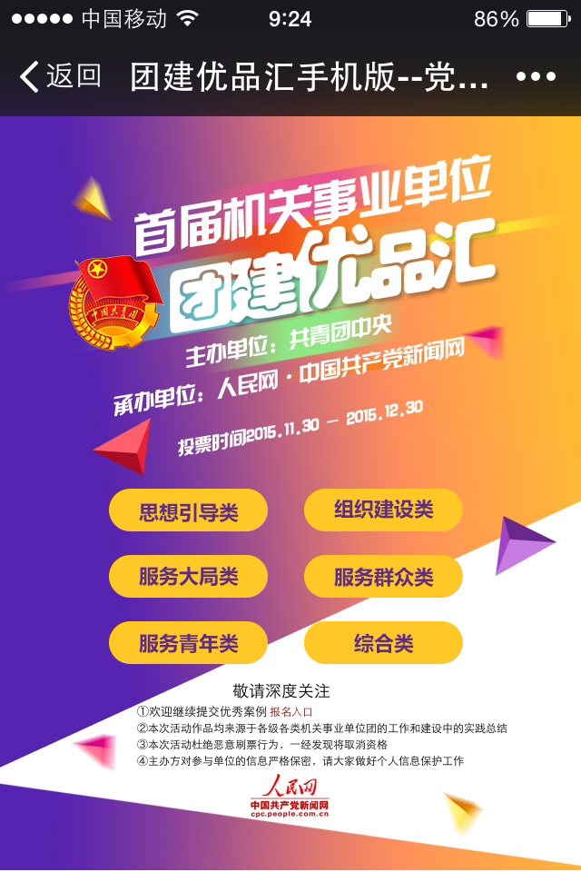 据了解,2015年7月,首届机关事业单位“团建优品汇”活动正式启动。通过组织推荐、自荐互荐的方式,活动共征集了来自27个省(区、市)的416个项目,涵盖了公共服务、行政执法、政策研究等多个领域。申报的团建项目在官网一经发布,就引起了机关事业单位团员青年的广泛关注和热情参与。微信投票得票数超过10万的项目达42个,其中得票数超过20万的有12个;官网点击率达600多万次。
