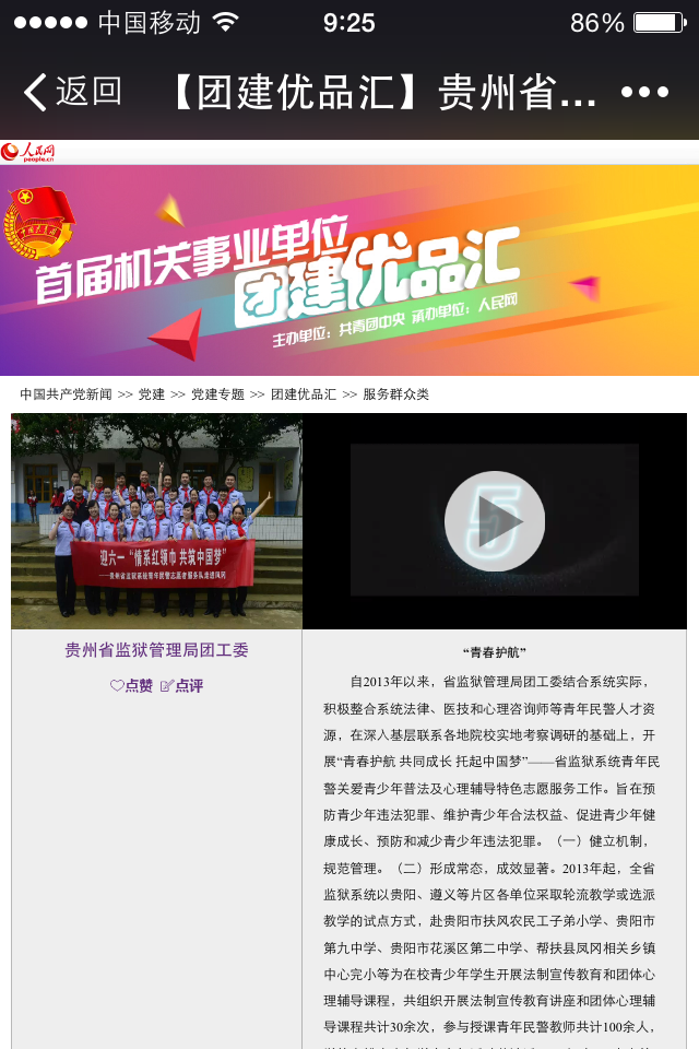 近日,综合考察项目质量、网络人气等指标,100个“团建优品汇”入选项目正式产生,省监狱管理局团工委“青春护航 共同成长 托起中国梦”青少年普法心理辅导志愿服务活动与省委办公厅团工委“贵山论道”读书会微信主题论坛、省六盘水市国家税务局团支部“国税蓝•爱心暖”青年志愿服务亮青春主题活动等3个贵州项目入选。入选项目分为思想引导类、组织建设类、服务大局类、服务群众类、服务青年类和综合类,这些项目主题鲜明、内涵丰富,紧扣党政大局要求、业务工作特点和青年成长实际,青年参与广泛、形式生动灵活、颇具创新亮点。入选项目中,有的侧重于创新青年思想政治教育的新载体,有的重在带领团员青年深入一线锻炼才干,有的组织青年围绕改革创新贡献力量,有的为弱势群体提供长期支持,有的持续开展各类惠民亲民利民实践活动,有的探索以项目为依托加强组织联创共建的新模式,充分体现了机关事业单位共青团工作的特色和方向,也展示了团员青年奋发有为、创新创业创优的风貌和作为。