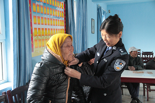 刚走进敬老院的活动室,监狱民警童新霞就把一件崭新的羽绒大衣为一位聋哑老人穿上了,看到老人脸上孩子似的笑容,在场的民警心里特别开心欣慰。大家面带微笑,纷纷把带来的酸奶、八宝粥、面包送到每个老人手中,并把洗洁精、洗衣液等洗漱用品交给敬老院管理人员,帮助清扫院内垃圾,让老人们的生活更加洁净舒适。监狱医院民警宋东盛现场给敬老院的20多位老人测量了血压,并询问他们的身体状况,告诉他们生活中饮食、起居等注意事项。有的民警跟老人们聊家常,了解他们的身体状况,分享难忘的时光。当天的慰问活动让老人们备感大家庭的温暖,他们的脸上都露出了开心的笑容。监狱民警张庆丽说:“今天我们为大家表演节目,希望爷爷、奶奶们开心、快乐,你们的欢乐就是我们最大的幸福。”