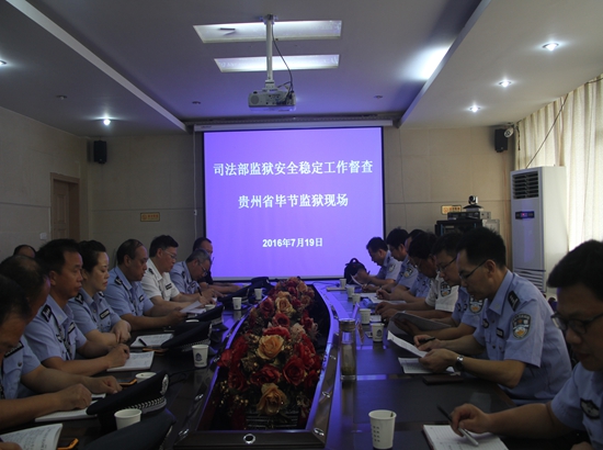 7月19日,司法部监狱安全稳定工作督查组一行4人在司法部监狱管理局巡视员何平带领下,到毕节监狱督查指导工作。贵州省监狱管理局相关职能处室领导陪同。