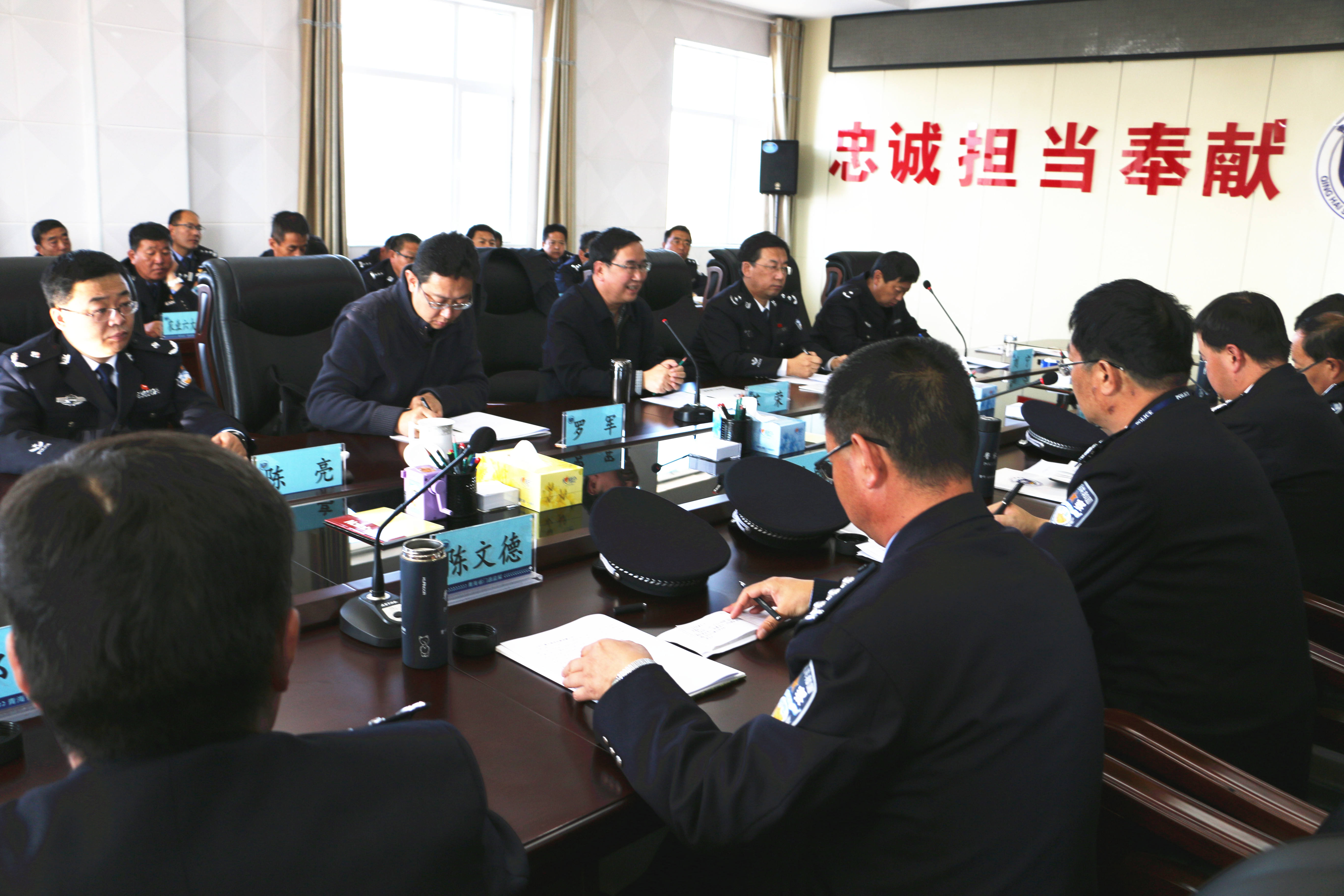 在下午进行的工作汇报会上,监狱党委书记、监狱长党永忠就门源监狱的基本情况、主要工作、问题困难和发展思路作了详细汇报。在听取汇报后,沈森局长首先对门源监狱整体工作给予了肯定,认为门源监狱新一届领导班子对下一步的工作,思路清晰,定位准确,符合监狱(农场)的发展需要。他要求,一是要高度重视监管安全,尤其是岁末年关,任务繁重,更要抓好制度落实,强化岗位职责,确保 “四无”。二是要结合发展规划,提前谋划、提前安排,确保监狱农场实现双赢。三是要按照厅局党委的要求,抓紧落实好已经提出的工作思路。随后苏荣厅长结合调研情况,对门源监狱的工作作了重要指示。一是要突出主责主业。要求监狱党委一定要把主责主业放在心中、抓在手上;要将主要的人力、精力、资源投入在监狱改造上;要把主责主业放在第一位。二是高度重视监狱安全稳定。一定要加强“三化”建设,只有标准化管理,才能把措施落到实处。要持之以恒,常抓不懈,确保监狱安全稳定不出问题。三是要改善基础设施和工作环境。要加大基础设施投资力度,抓紧申报项目,让宏伟的蓝图变成现实。四是要关注民生,改善民生。加快住建房建设,调动一切积极因素,提高职工的集体荣誉感和凝聚力。五是抓好班子,带好队伍。紧紧围绕“三基”建设、“三化”建设、“三严三实”及“两学一做”,抓好队伍建设,提升民警专业能力,提高民警职工思想道德水平和纪律作风要求。