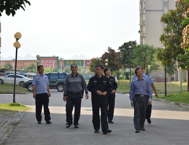 邵副政委与随行人员听取了宜州监狱生活区环境绿化美化、警体训练中心的功能规划、室外篮球场的改扩建工程后,对宜州监狱职工活动场地规划改造工作做了重要的指示。