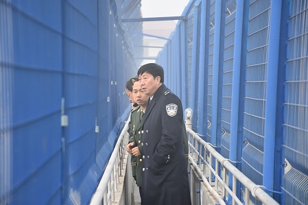王张印同志对监墙照明设备、隔离网墙、刀刺网等警戒设施逐一进行了检查,对周界高大建筑物的防攀爬设施情况进行了查看,并对可能影响监管安全的问题和隐患进行了安排部署。最后要求狱政部门加强警戒设施的检查和维护,确保各项设施运转正常。
