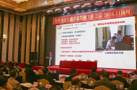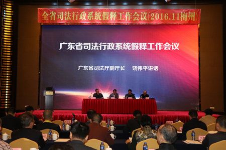 11月24日上午,全省司法行政系统假释工作会议在梅州召开。省司法厅副厅长饶伟平,省监狱管理局局长李景言、副局长陈志文,省司法厅社区矫正管理局局长杨运根等领导出席会议,来自全省司法行政系统各相关单位的领导130多人参加会议。