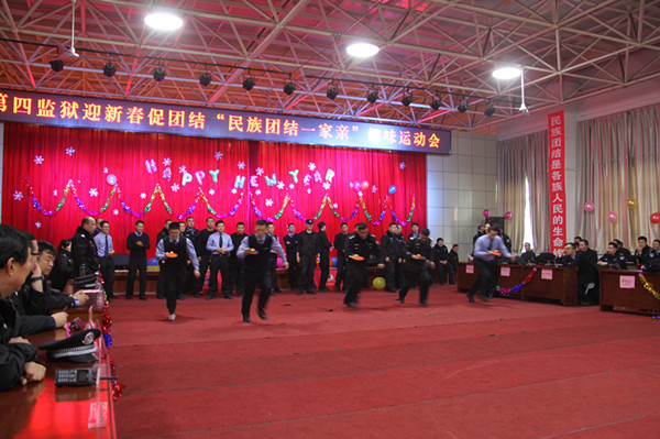 1月6日下午,第四监狱多功能大厅内,欢笑声、喝彩声、鼓舞声交织成一首美妙的音乐掀开了新年的第一篇章。迎新春・促团结“民族团结一家亲”趣味运动会,正在这里热火朝天地开展着