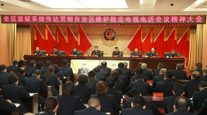 2017年1月8日上午,新疆监狱管理局召开全区监狱系统干部大会(视频),迅速传达贯彻自治区维护稳定工作电视电话会议精神,安排部署监狱安全稳定工作。