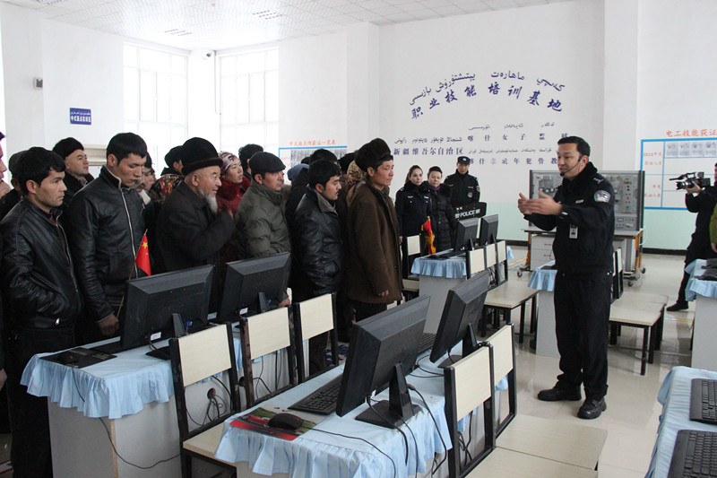 清晨9:00,教育科民警在喀什火车站接到由萨克萨克街道党工委陆美霞书记的带队,库车县政法委相关领导干部携五十余名服刑人员的亲属。上午10:40,库车县政法委一行参观了“去极端化”教育设施、职业技能培训基地及罪犯监舍。