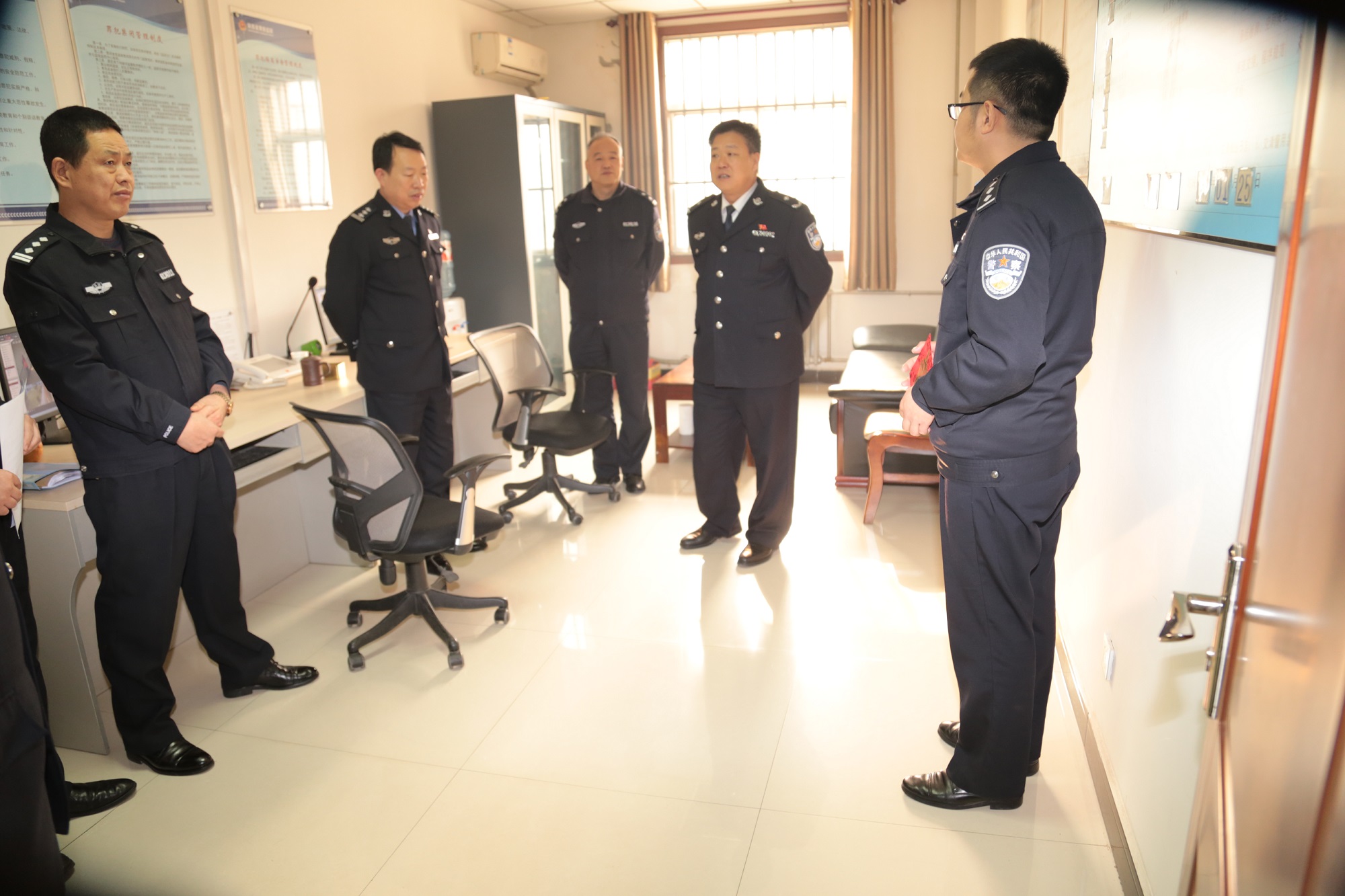 上午10点30分,监狱召开全监警察职工收心会。监狱政治处负责人曹开斌组织大家学习了司法部《关于学习宣传高宝来同志先进事迹的通知》《关于追授史学东同志、冯涛同志全国司法行政系统二级英模荣誉称号的决定》,教育引导全监警察职工要以高宝来、史学东、冯涛同志为榜样,坚定理想信念,坚定法治精神,勤勉敬业,扎实工作,奋力拼搏,开拓进取,为维护监狱安全稳定,推动监狱工作创新发展积极贡献正能量。