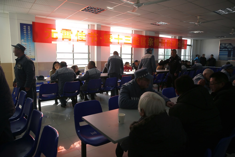 冬日的阳光透过“元宵佳节暨十三监区亲情会见现场会”大红色的条幅,洒在“宽管会见人”身上,也暖在他们心底。此时此地,虽没有汤圆,没有灯笼,没有节目,有的仅仅是家人心与心的紧紧相连。但与家人牵手,便是这二十名服刑人员在今年元宵佳节里收到的最美好的节日礼物。