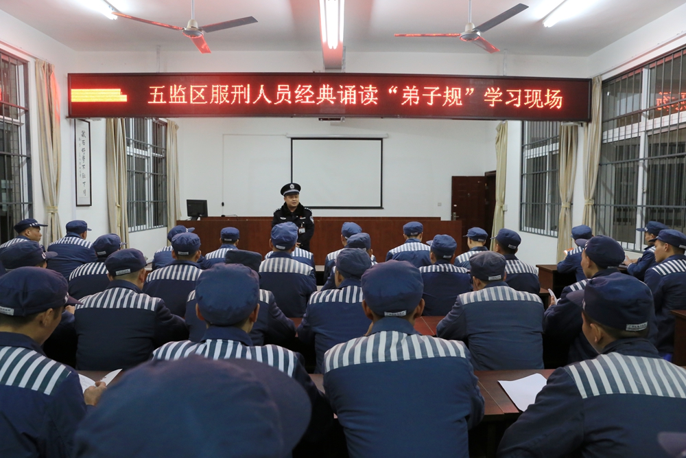 国学经典诵读现场由教育改造科副科长袁万能主持,诵读内容为“弟子规”,袁副科长在诵读前,对内容的含义逐字逐句进行了讲解,并结合罪犯改造进行了延伸,并提出不仅要会读,更要理解运用,使罪犯深受教育启发,之后,在场的43名罪犯集体诵读了“弟子规”多遍,罪犯普遍表示,每诵读一遍“弟子规”,都有不同的感悟,对自身改造有很大的促进。