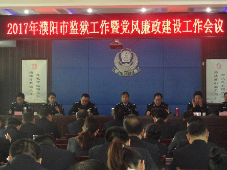 3月15日上午,濮阳市监狱召开2017年监狱工作暨反腐倡廉建设工作会议,党委书记、监狱长董利军做了濮阳市监狱2017年工作报告,党委委员、纪委书记杨仲彪作了党风廉政建设和反腐败工作报告,党委委员、政治处主任王建虎宣读了市监狱先进个人名单,监狱各部门负责人向监狱长董利军递交2017年党风廉政建设目标管理责任书。监狱全体干警职工80余人参加了会议。会议由监狱党委副书记、政委吕涛主持。