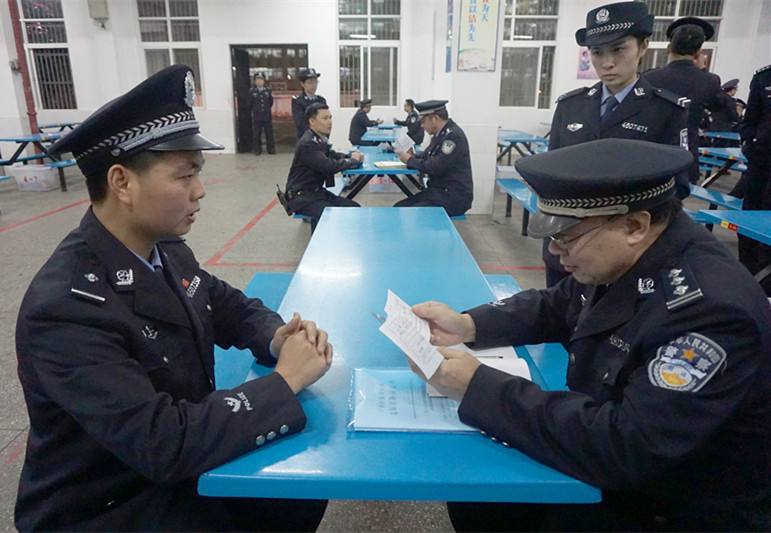 22日晚,检查组对一监区进行规范化监区季度抽查复检,宜州监狱在家领导均出席考评现场。检查组依次对一监区警察进行警体技能考核,观看了警察队列训练、警棍操、擒敌拳;对罪犯进行行为规范队列考核,检查罪犯集体背诵、集体唱歌、个人抽背、队列操练等4个项目;考核警察“认人点名”“四知道”情况。