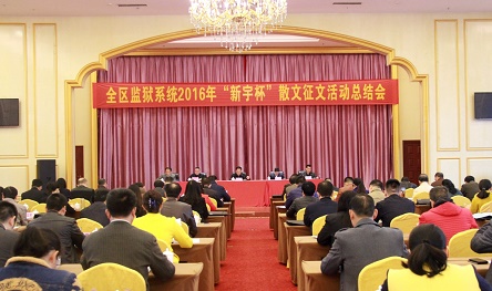 3月28日,“新宇杯”散文征文总结会在宜州监狱召开。来自全区监狱系统20个单位的领导和优秀散文作者代表共一百多人参加会议,广西监狱管理局副局长范庆平、广西监狱工作协会秘书长谈志明、广西监狱管理局政治部副主任陆建武出席会议并讲话。