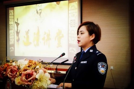 道德讲堂紧紧围绕“唱歌曲、宣誓、诵经典、学模范、谈感悟、送吉祥”六个环节展开,当充满激情的《监狱人民警察之歌》响起时,10名女警随着歌曲跳起了舞蹈,英姿飒爽的优美的舞姿博得在场民警的阵阵掌声。