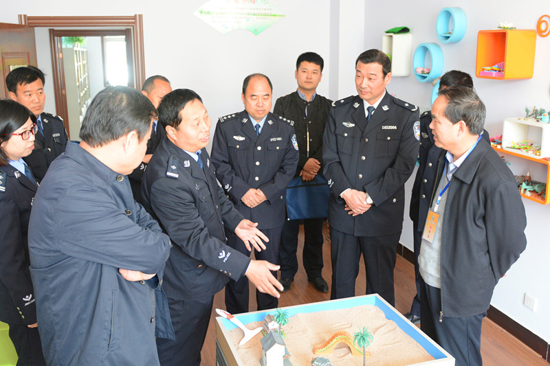 抵所后,许总队长一行不作休息,不听汇报,立即深入到戒治区、戒治新区在建工程工地和自戒康复中心等地进行实地调研。每到一处,他都仔细问,认真听,不时给予点评和指导。步入戒治区教育矫治中心,许总队长一行聆听了讲解员关于《弟子规》雕刻及河东历史名人挂板的介绍,仔细参观了各个功能室,对该所浓厚的文化气息、注重以文育人、以文化人的做法表示肯定和赞赏。在操场上,兴致勃勃地观看了戒毒人员的“威风锣鼓”表演,为学员们激情的表演、娴熟的配合、良好的精神面貌,不时鼓掌喝彩,不由称赞道“这鼓敲得真够专业,看来戒毒所里大有人才啊!”在收治大队,重点了解了公安送人情况、在收人员的吸毒类型、脱毒及集训情况,对收治队的硬件设施、安全防护等表示满意。在学员食堂,参观了操作间、蔬菜库和副食库,详细询问了戒毒人员的一日三餐安排、伙食标准、工具管理等情况,亲口品尝了刚刚出笼的热馒头,夸奖道“这馒头麦香味好浓啊!”进入习艺车间,侧重了解了加工产品的种类、工艺流程、奖惩激励机制等,指出,劳动最能改变人心人性,一定要用好劳动矫治这个基本手段。视察戒治新区在建工程工地的过程中,具体了解了工程进度、未来收治规模、后期规划及文化氛围布置等,深情地说道,每次来董村都感觉变化很大,一次一个样,每次都能给人带来惊喜和震撼。在自戒康复中心,重点了解了收治情况、戒治管理模式及美沙酮门诊运行情况等,强调指出,戒毒工作有干头,有发展余地,一定要加强探索创新,干好了会大有作为。同时指出,戒毒工作也是一项复杂的社会系统工程,离不开全社会的共同参与,希望戒毒所要打开大门办戒毒,立足场所实际,打造特色,真正把戒毒工作做强做大做成品牌,以优异的成绩向党的十九大献一份厚礼。